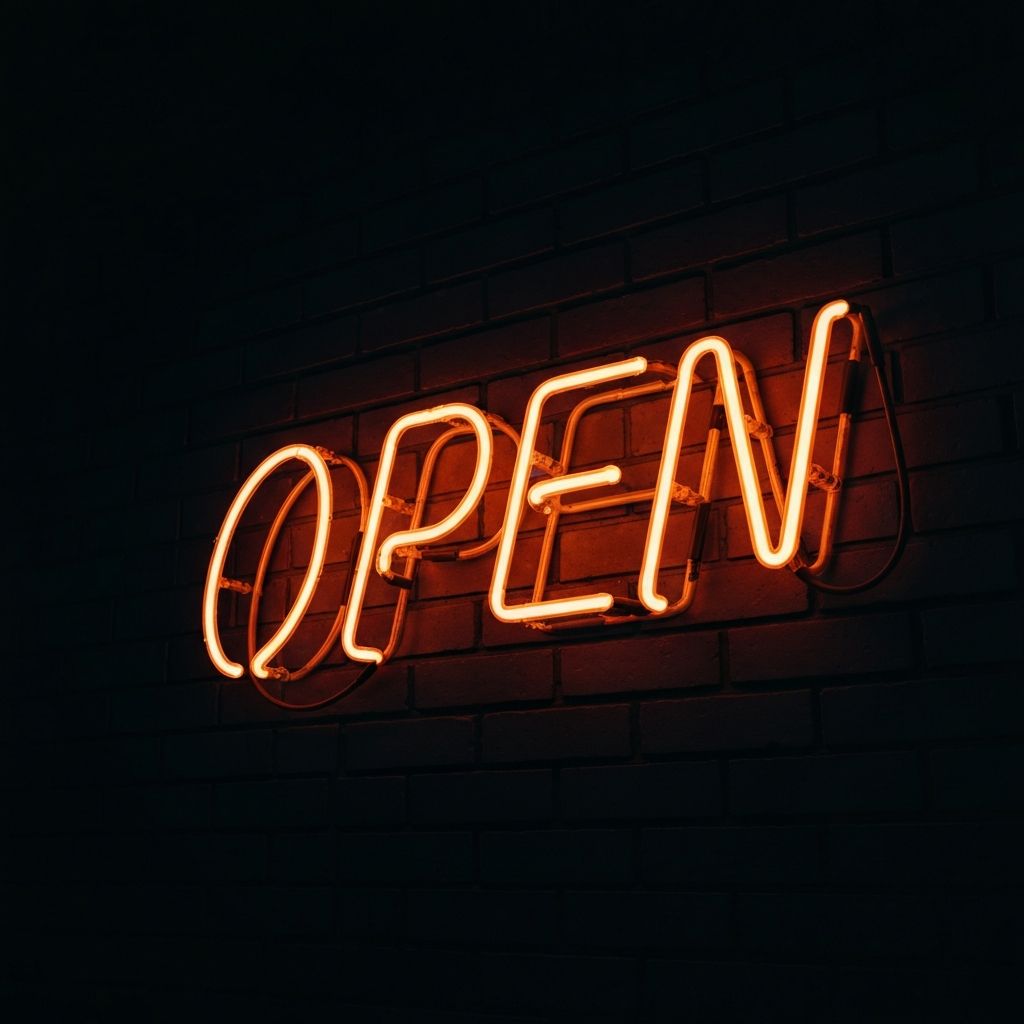 Klasyczny neon z giętych rur szklanych